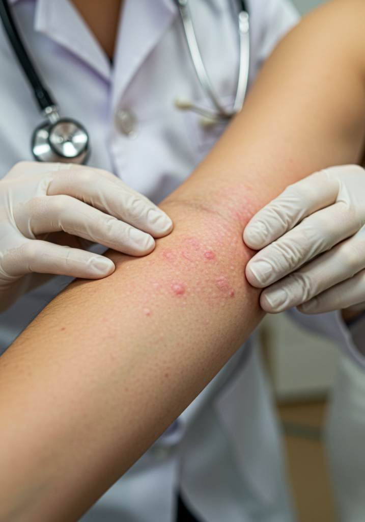 - Pode surgir em áreas específicas ou em todo o corpo.